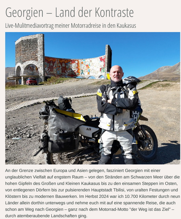 Kultur² Reisevortrag Wolf Haenlein GEORGIEN Samstag im STZ 12.12.2025 Einlass 19:00 Uhr Beginn 20:00 Uhr